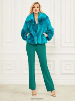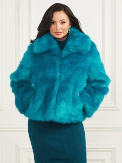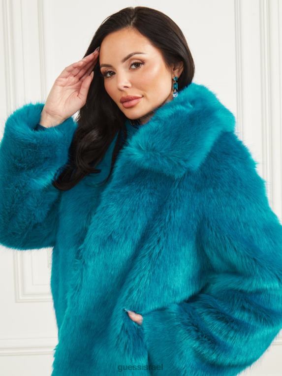 GUESS נשים מעיל פרווה מלאכותית של גוונדה F8RV1832 לבוש כחול ברמודה עם כהה יותר