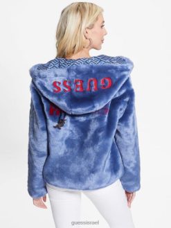 GUESS נשים מעיל פרווה מלאכותית של דניאלה F8RV1866 לבוש כחול תשוקה