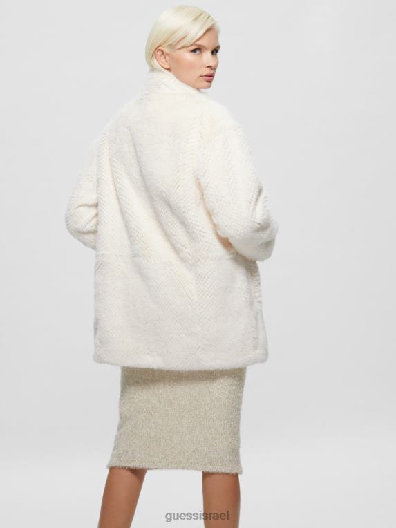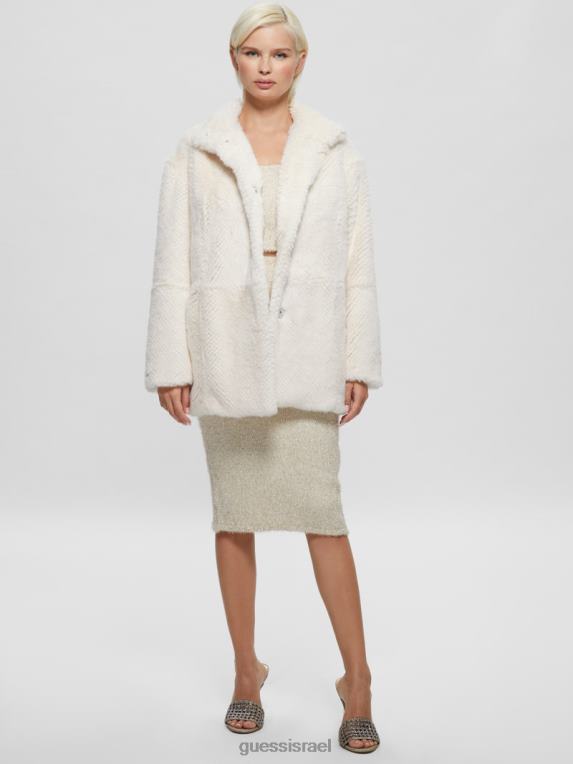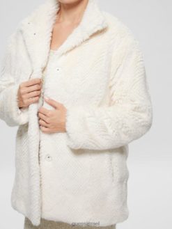 GUESS נשים מעיל פרווה מלאכותית של מישלינה F8RV1885 לבוש לבן שמנת