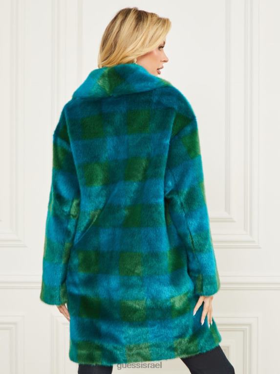 GUESS נשים מעיל רושל F8RV1911 לבוש ירוק וכחול ברמודה