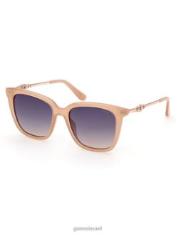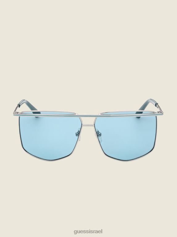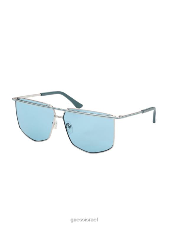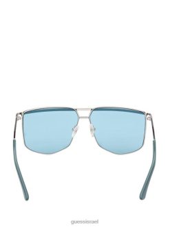 GUESS נשים משקפי שמש גיאומטריים לסרגל גבות ממתכת F8RV3768 אבזר כסף/כחול מבריק