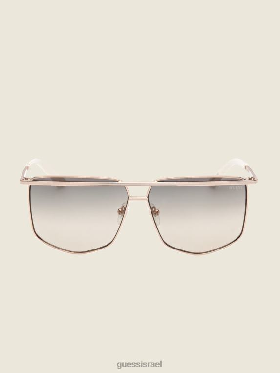 GUESS נשים משקפי שמש גיאומטריים לסרגל גבות ממתכת F8RV3690 אבזר שָׁחוֹר