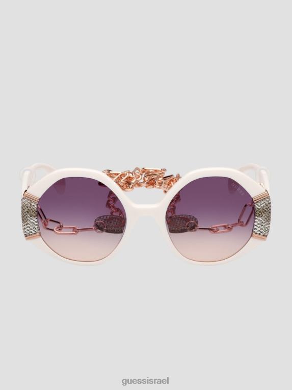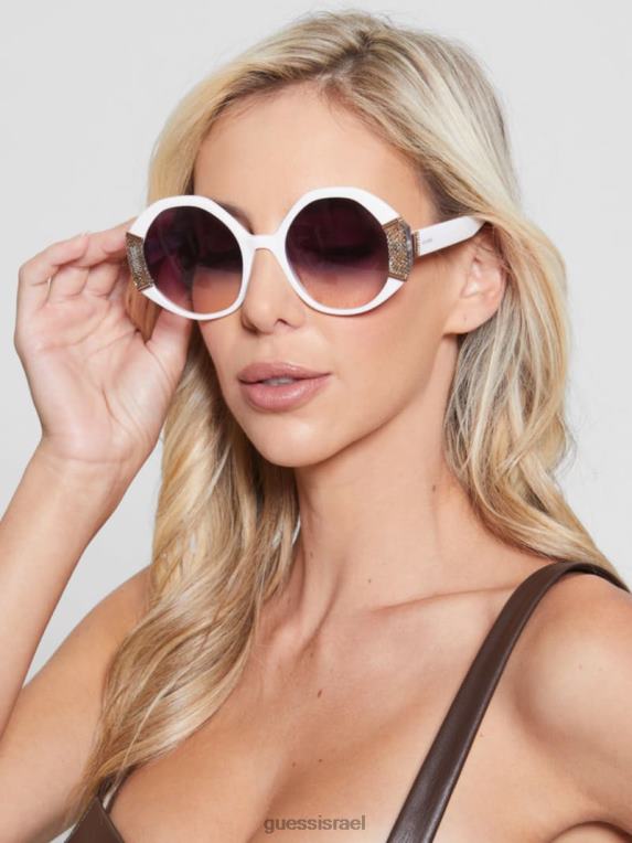 GUESS נשים משקפי שמש גיאומטריים עם שפה מתכתית F8RV3668 אבזר לבן