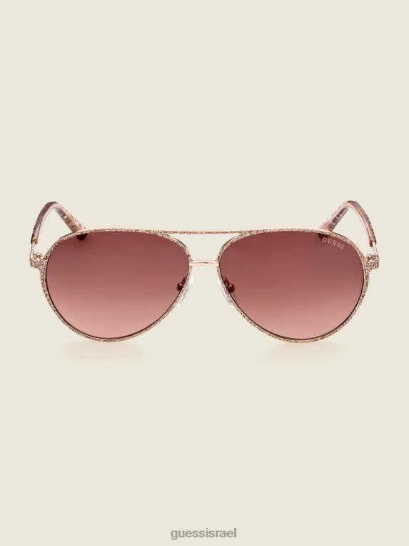GUESS נשים משקפי שמש טייסים בהדפס בעלי חיים F8RV3687 אבזר רוזגולד