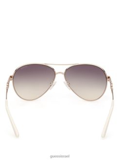 GUESS נשים משקפי שמש טייסים מרובע g link מתכת F8RV3649 אבזר לבן