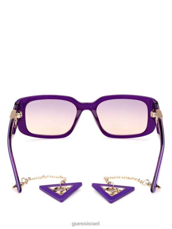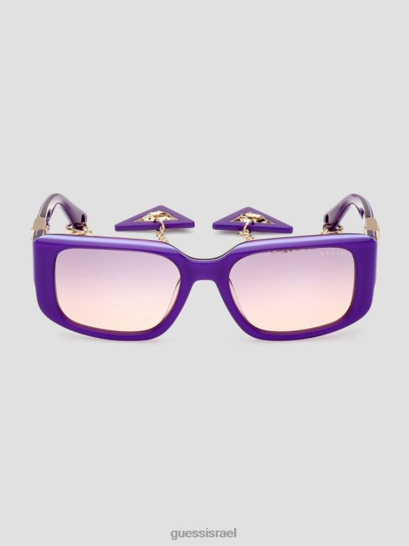 GUESS נשים משקפי שמש מפלסטיק מרובעים עם מחזיק מפתחות F8RV3662 אבזר סָגוֹל