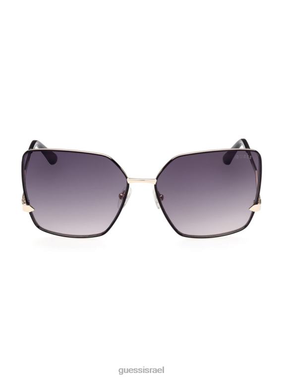 GUESS נשים משקפי שמש מרובעים זיגזג גדולים F8RV3771 אבזר 05b (שחור)