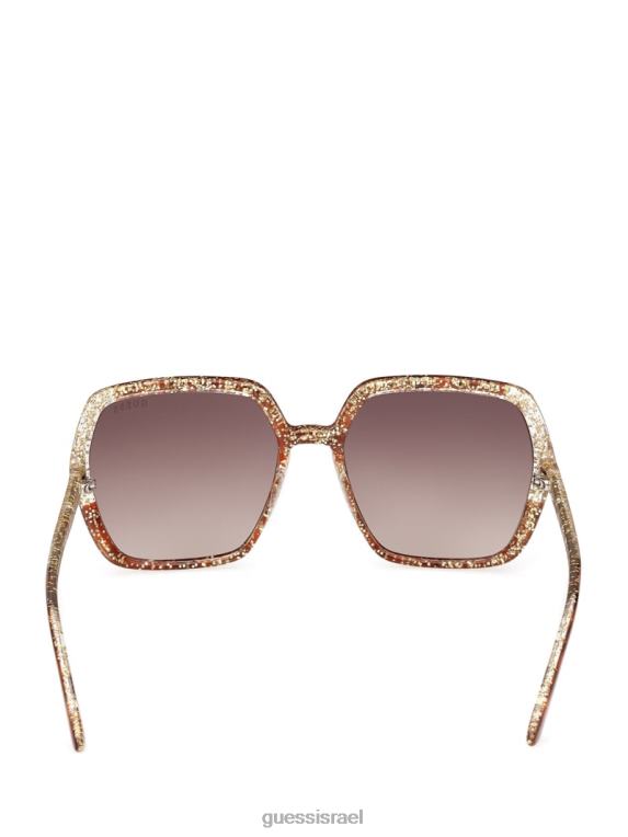 GUESS נשים משקפי שמש מרובעים מפלסטיק נוצצים F8RV3758 אבזר הוואנה כהה/שיפוע brn