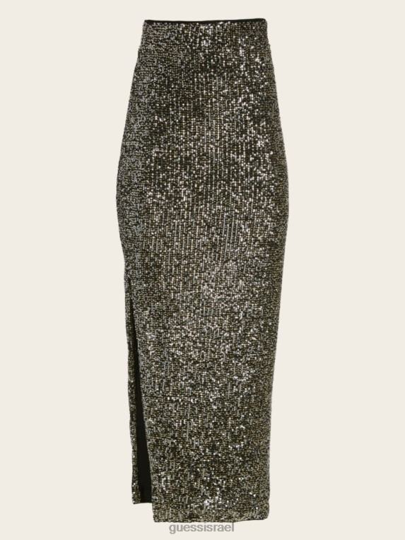 GUESS נשים נוצץ בחצאית הכהה F8RV2364 לבוש מולטי שחור ג’ט