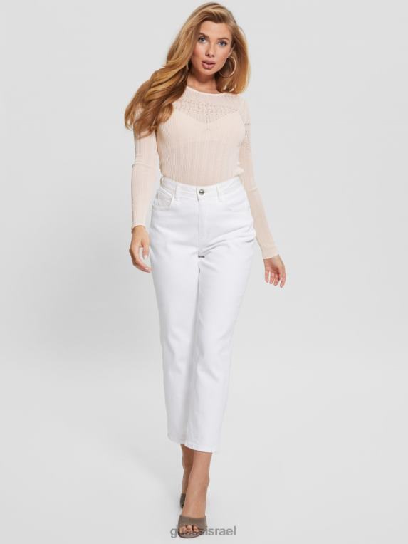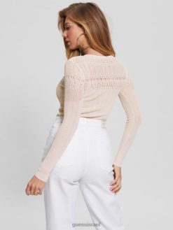 GUESS נשים סוודר סונטה מתוקה אקולוגית F8RV1549 לבוש יונה לבן