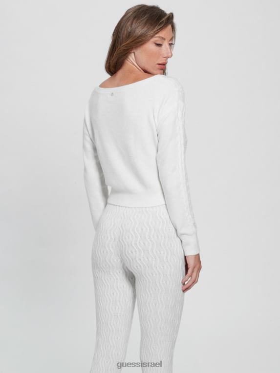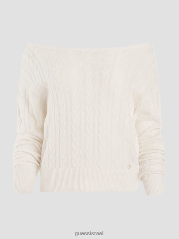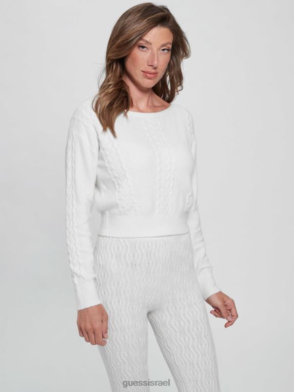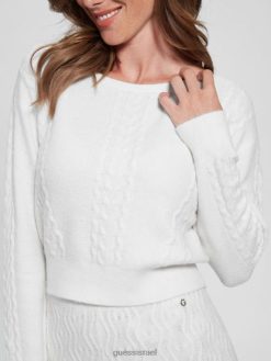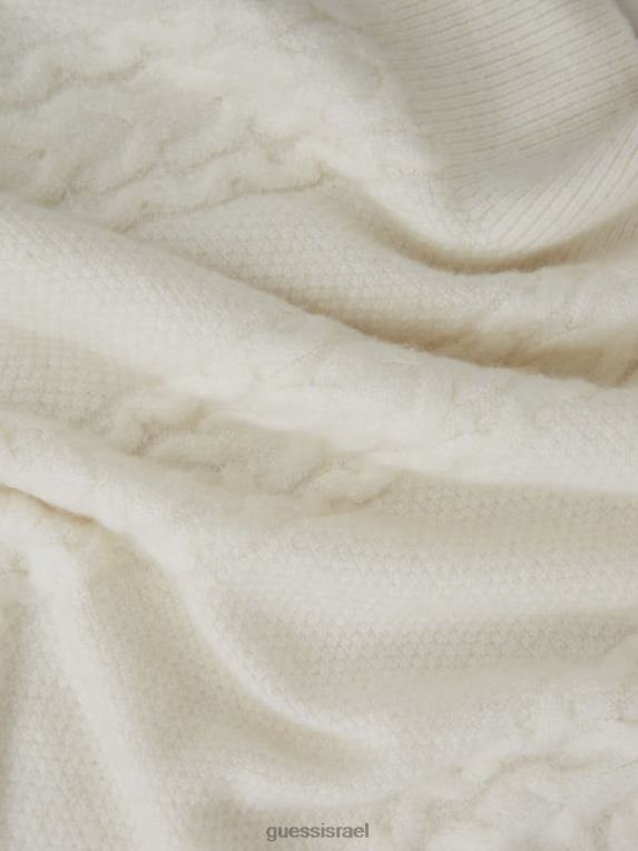 GUESS נשים סוודר סרוג בכבלים מעורב של טרזה F8RV1563 לבוש יונה לבן