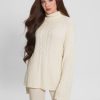 GUESS נשים סוודר צווארון גולף בכבלים של wendi F8RV1574 לבוש יונה לבן