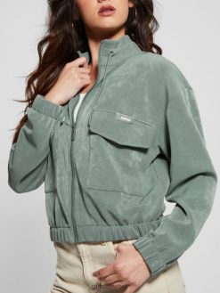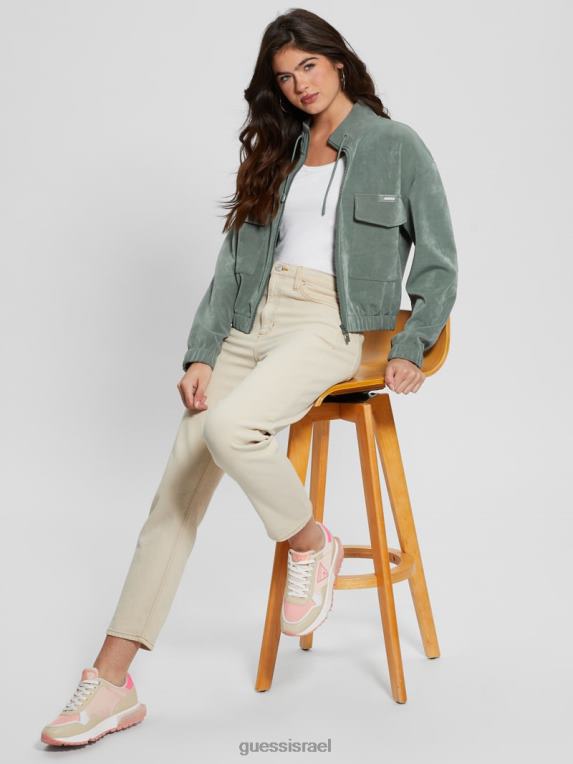 GUESS נשים סוודר רוכסן של euphemia cargo F8RV2462 לבוש צהבהב ורידיאן