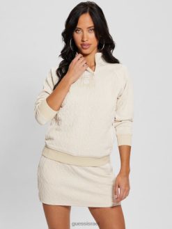 GUESS נשים סווטשירט אקארד עם חצי רוכסן של דרלה F8RV2459 לבוש gj בז’ אקארד