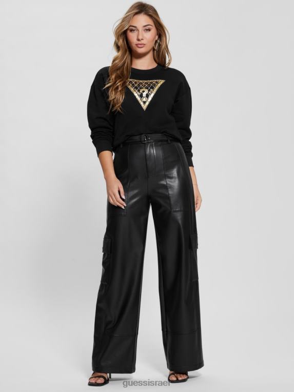 GUESS נשים סווטשירט לוגו רשת קריסטל F8RV1691 לבוש שָׁחוֹר