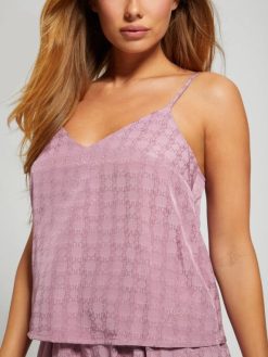 GUESS נשים סט פיג’מות דוריס F8RV1175 לבוש 4 גרם יין ג’קארד מבריק
