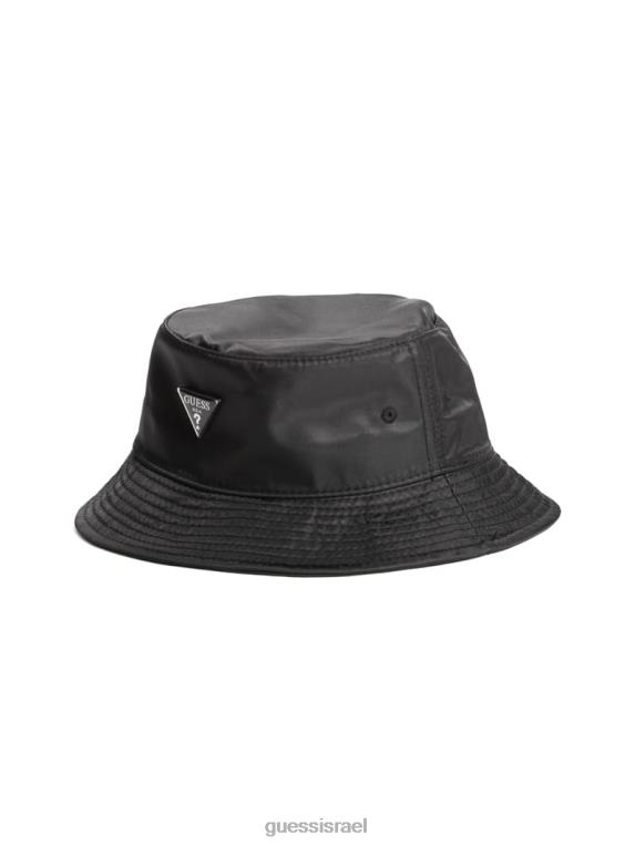 GUESS נשים סמל לוגו כובע דלי ניילון F8RV3798 אבזר עור נחש שחור