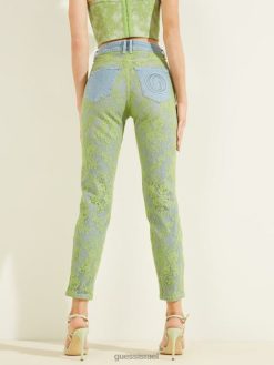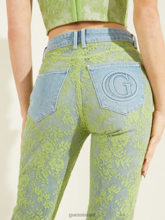 GUESS נשים סקיני ג’ינס תחרה משנת 1981 F8RV268 לבוש שטיפת תחרה ירוקה
