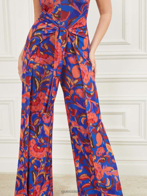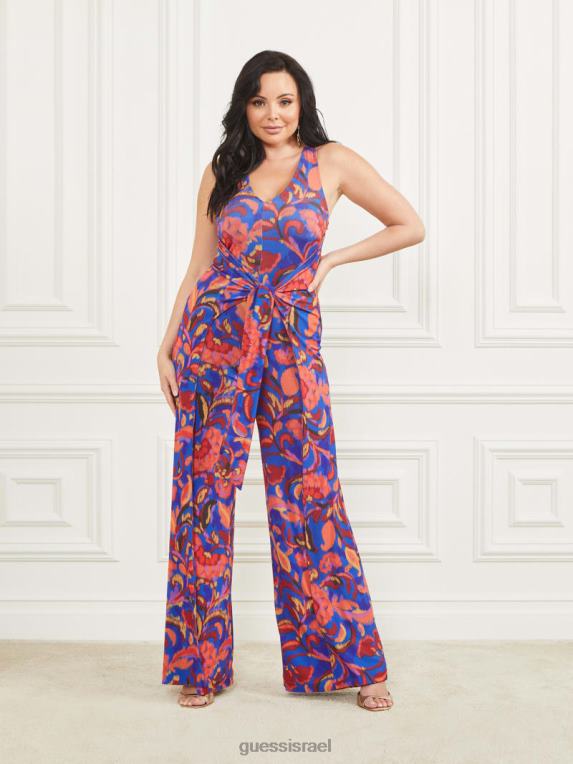 GUESS נשים סרבל ללא שרוולים של calla F8RV432 לבוש הדפס כחול בטי