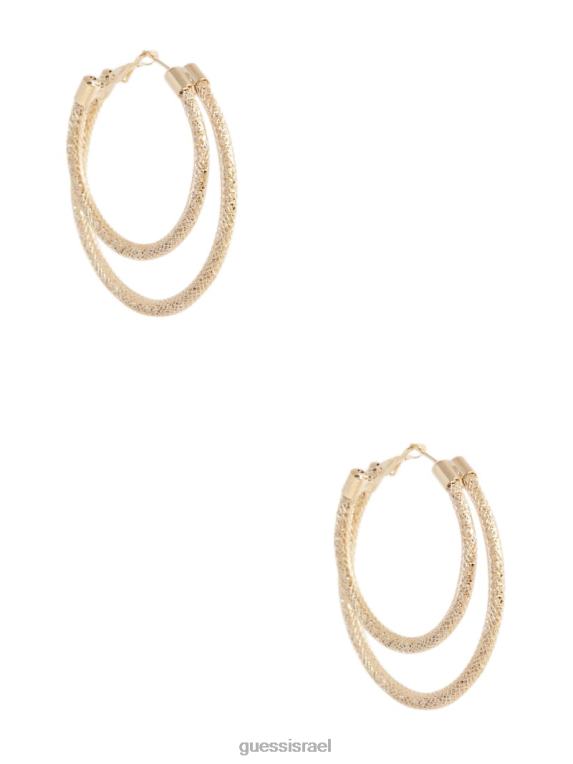 - הוסף עניין עם עגילי החישוק בגוון זהב אלה עם עיצוב בהשראת רשת עם אפקט שכבות.