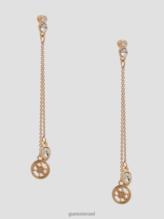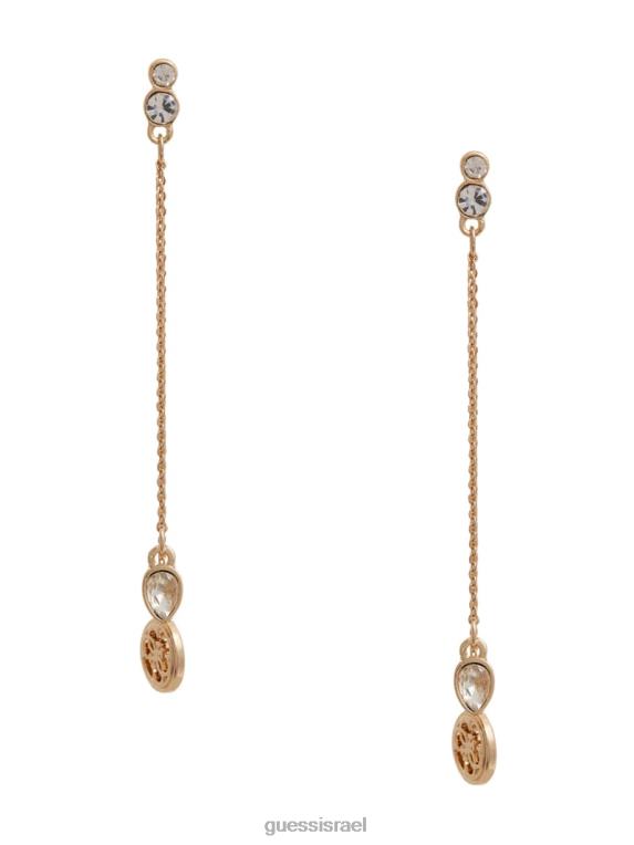 - הוסף מגע עדין עם עגילים אלה בגוון זהב המורכבים משרשראות ליניאריות עדינות עם לוגו משתלשל וקסמי קריסטל