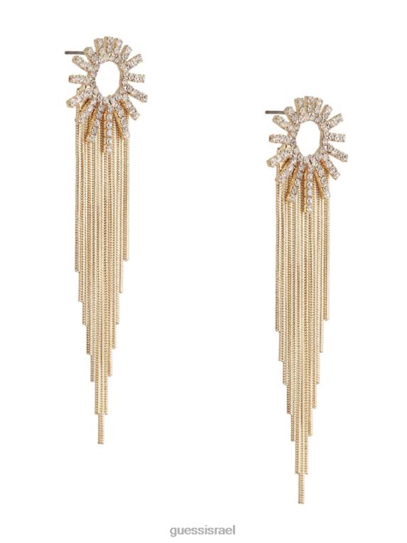 - עגיל טיפה זהב בגוון זהב כולל חלק עליון יהלומים מלאכותיים עם פריטי שוליים נופלים למטה.