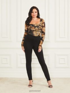 GUESS נשים עליון רשת לאחר כהה F8RV1467 לבוש לאחר הדפס פרחוני כהה
