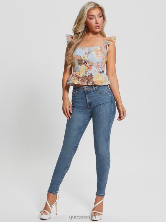 GUESS נשים עליונית אקו קארין פפלום F8RV1186 לבוש אפרסק פיורי