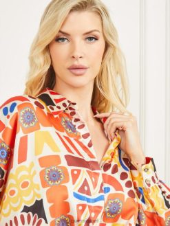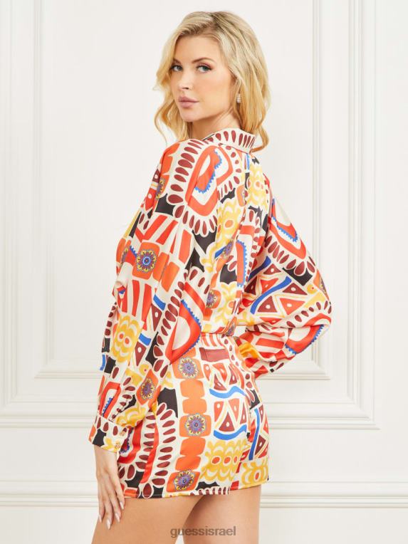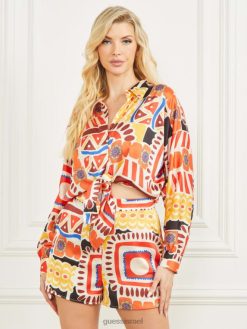 GUESS נשים מכנסיים קצרים מודפסים קרניבל F8RV2041 לבוש הדפס קרנבל
