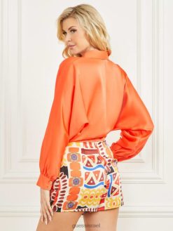 GUESS נשים עליונית סאטן קרנבל F8RV1087 לבוש שקיעה של המאיה