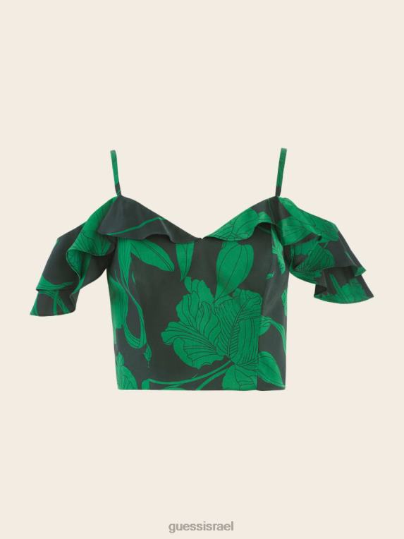 GUESS נשים עליונית סנידה כתף קרה F8RV1515 לבוש הדפס נוסטלגיה