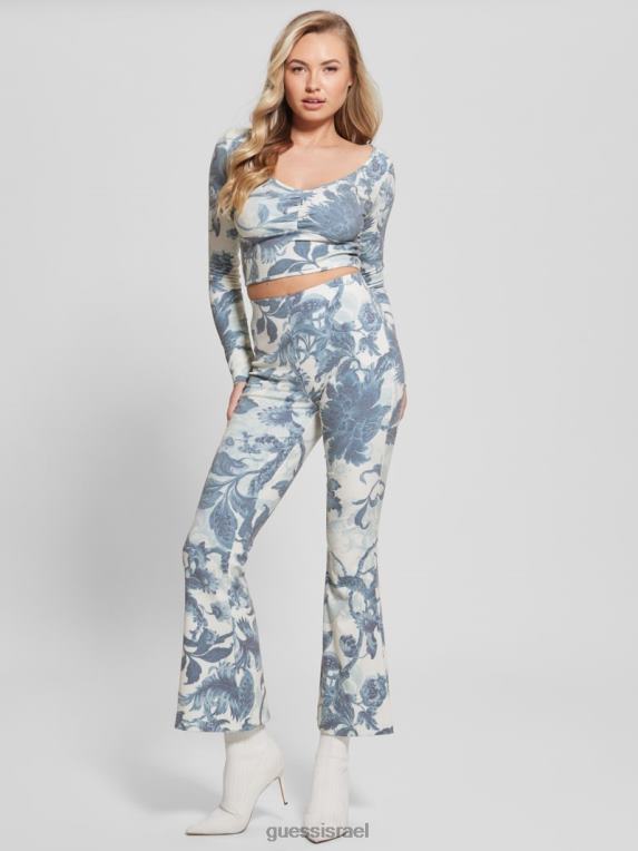 GUESS נשים עליונית פרחונית enriqueta F8RV1389 לבוש הדפס פרחים פורצלן bl