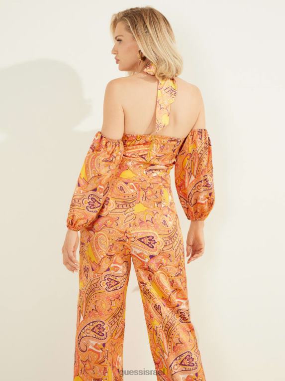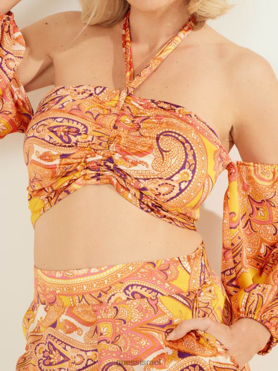 GUESS נשים עליונית קאבו פייזלי עם כתף קרה F8RV1612 לבוש קאבו פייזלי