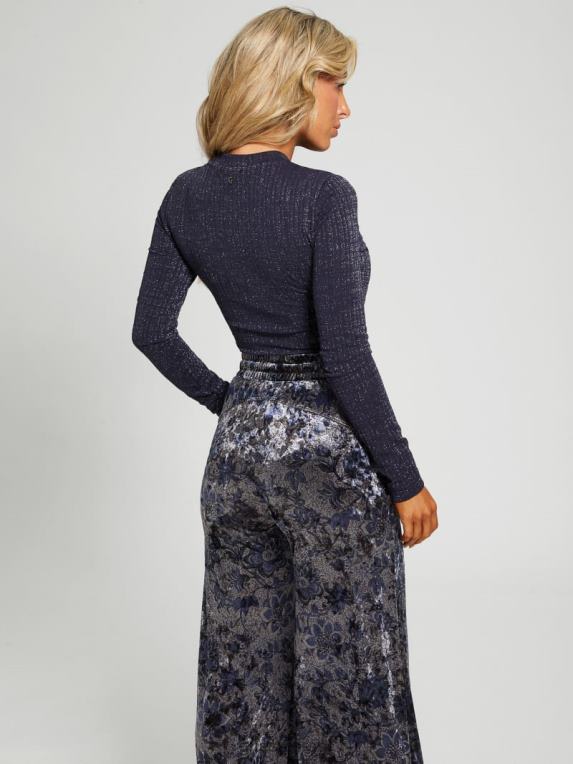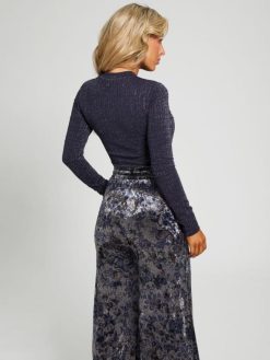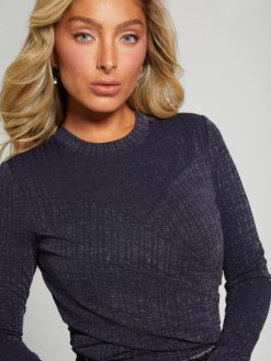 GUESS נשים עליונית קיילי F8RV1416 לבוש כחול כהה מלאנג’ נוצץ