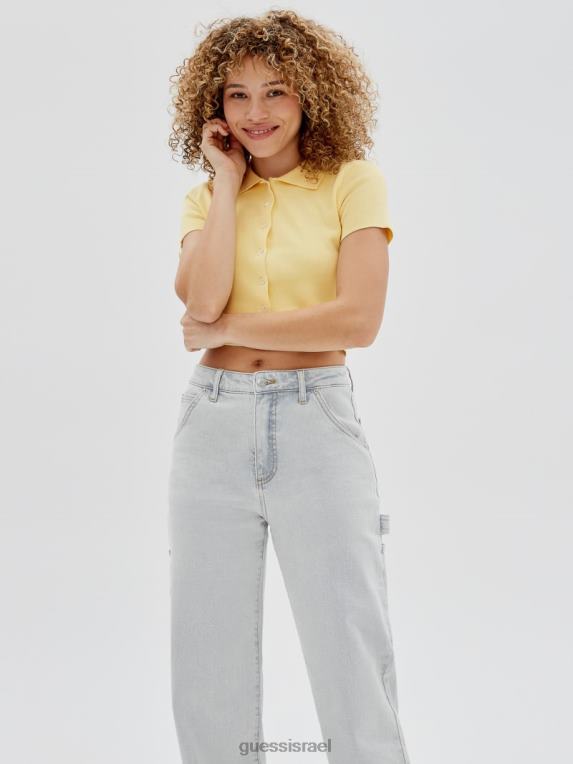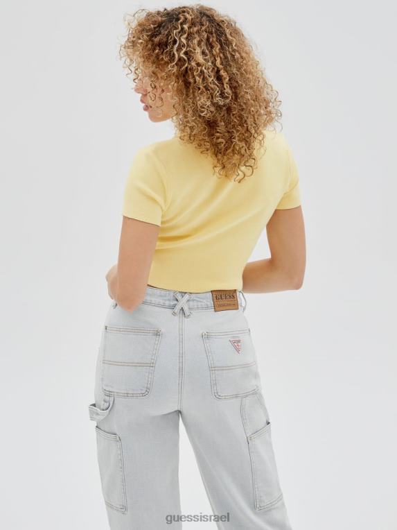 GUESS נשים פולו סוודר מקורי F8RV1370 לבוש חמאה תירס