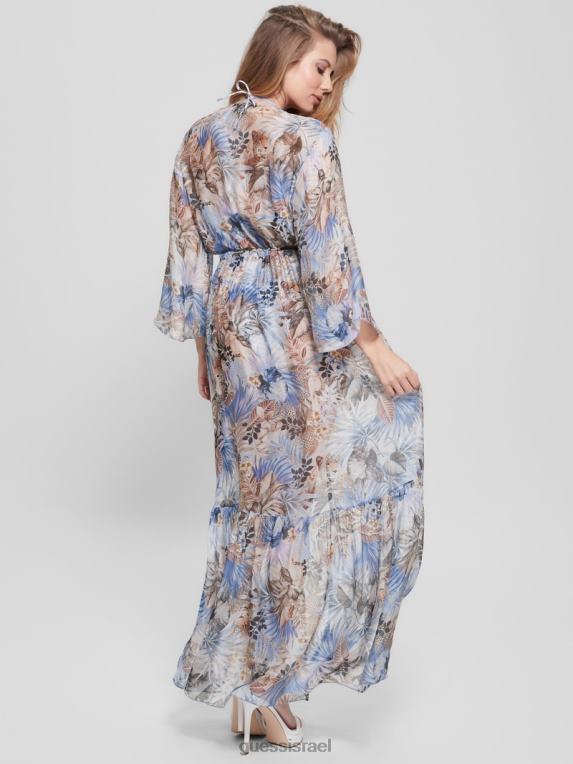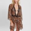 GUESS נשים קימונו ארוך בתערובת משי F8RV2541 לבוש עלווה של בעלי חיים גדולים