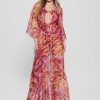 GUESS נשים קימונו ארוך בתערובת משי F8RV2562 לבוש ים וקונכייה בכל רחבי פי