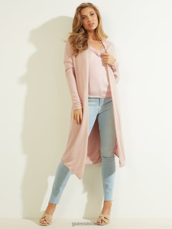 GUESS נשים קרדיגן קמיל עם חזית פתוחה F8RV966 לבוש בובה ורוד