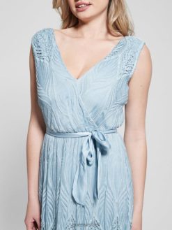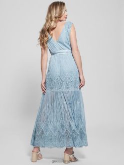 GUESS נשים שמלה ארוכה רקומה של פאם F8RV460 לבוש ג’ינס כחול נעלם מולטי