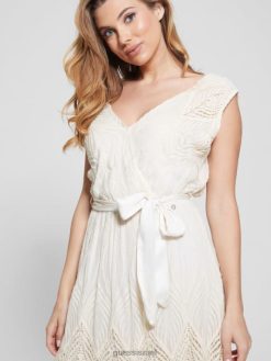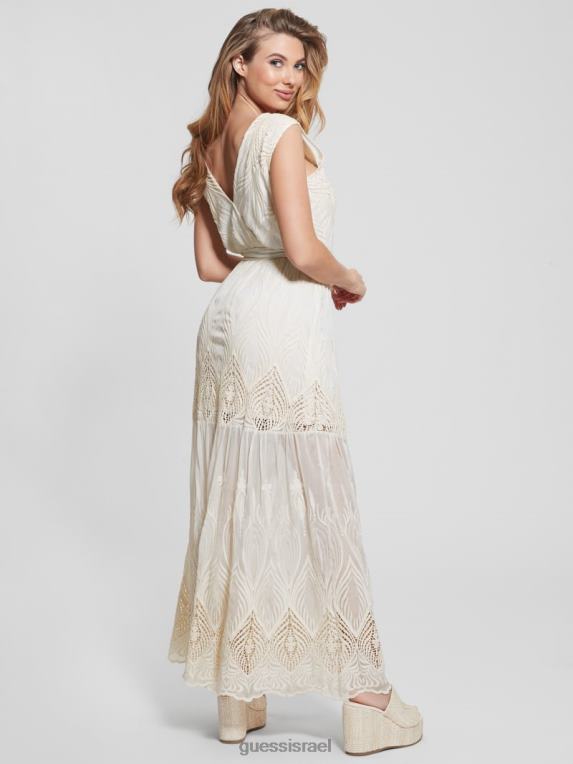 GUESS נשים שמלה ארוכה רקומה של פאם F8RV572 לבוש לבן שמנת