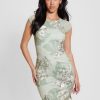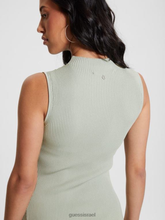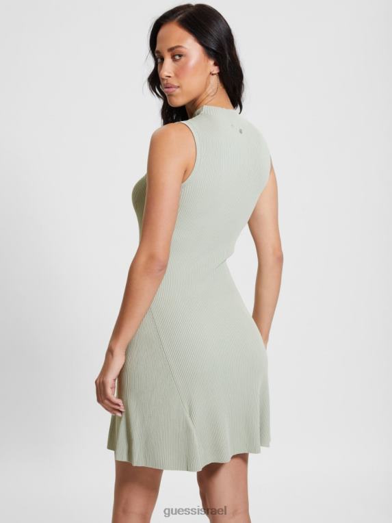 GUESS נשים שמלה בכושר אודרי מתרחב F8RV311 לבוש שרך מאובק