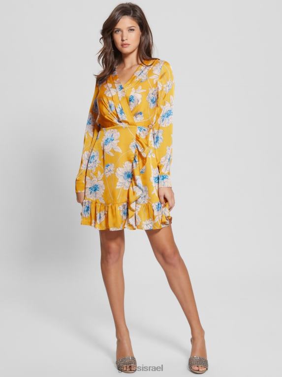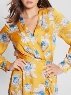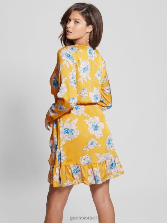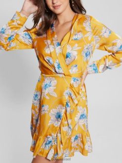 GUESS נשים שמלה מודפסת מימוזה אקולוגית F8RV718 לבוש הדפס פריחת זהב