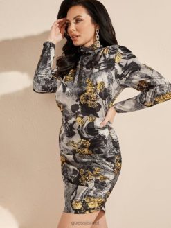 GUESS נשים שמלה מודפסת של אורורה F8RV850 לבוש ורד מוזהב