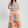 GUESS נשים שמלה מודפסת של טנזי F8RV429 לבוש הדפסת טופס עלווה