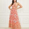 GUESS נשים שמלה פרחונית עם צלעות ג’ינג’ר F8RV507 לבוש גן מפואר א.א