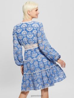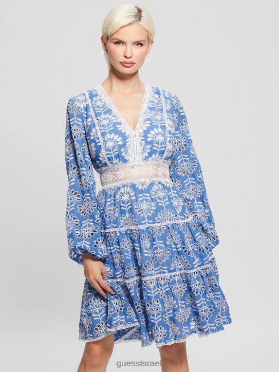GUESS נשים שמלה רקומה של איסלה F8RV313 לבוש מולטי כחול ברור