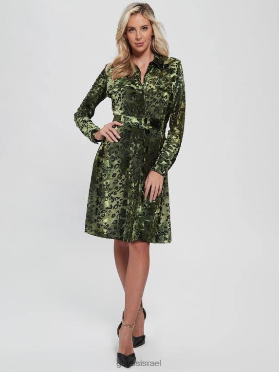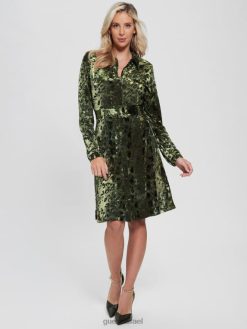 GUESS נשים שמלת אבוני F8RV876 לבוש שחיקה קטיפה צבאית g