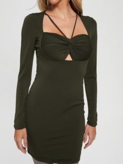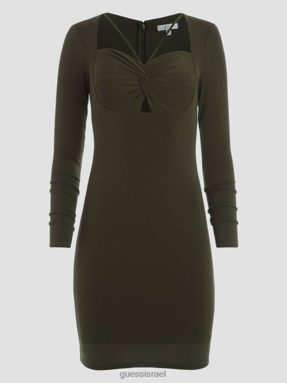 GUESS נשים שמלת אמה אקולוגית F8RV754 לבוש צייד ירוק