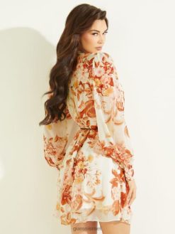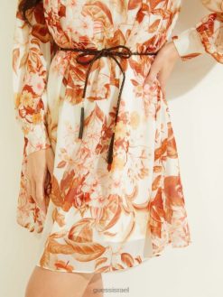 GUESS נשים שמלת אקו מורגן F8RV667 לבוש הדפס פרחוני יער לבן