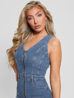 GUESS נשים שמלת ג’ינס אקולוגית מיקול F8RV11 לבוש שמי נוצה